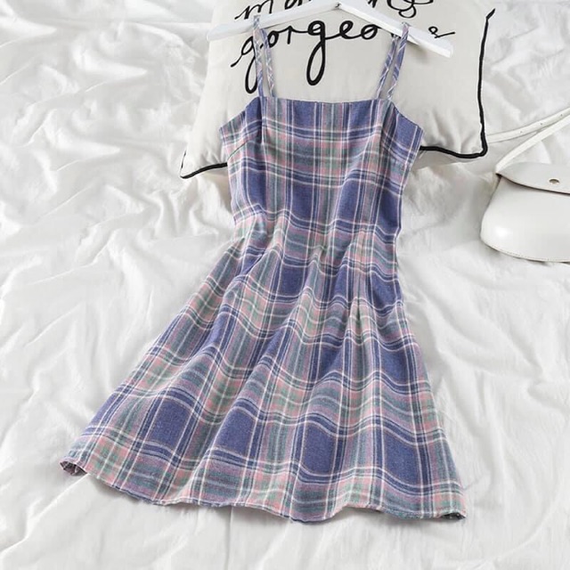 đầm cát hàn tay caro kèm nơ